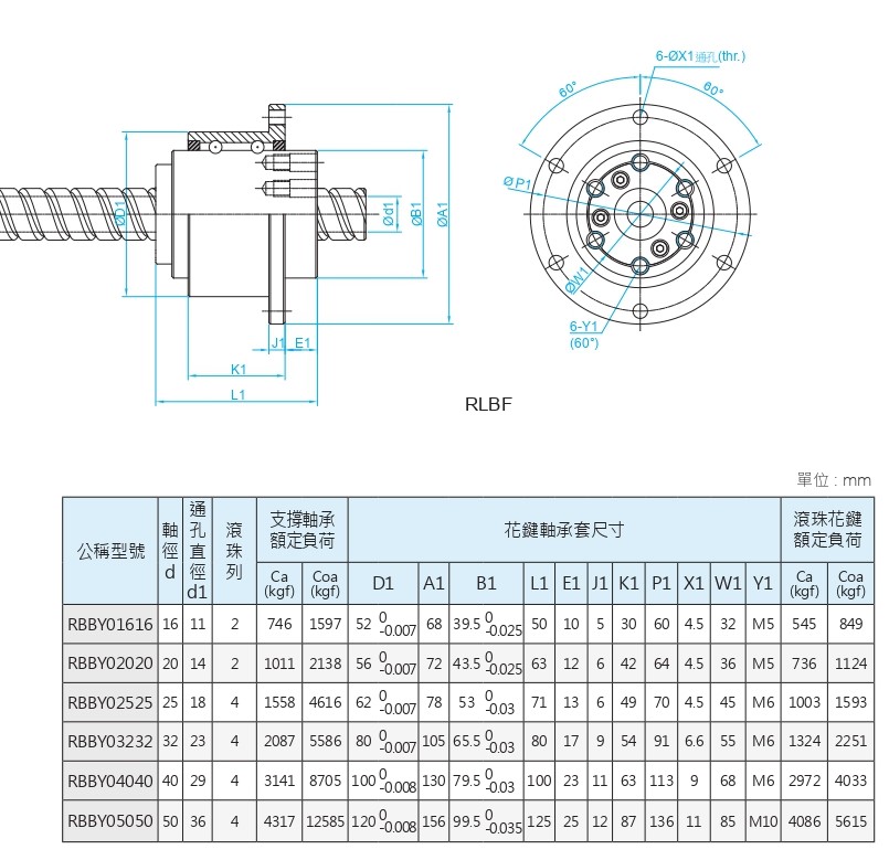 RBBY型螺帽旋轉式滾珠螺桿滾珠花鍵是將RFBY系列與RLBF系列結合,僅用一根軸就能進行旋轉、螺旋、直線模式的運動。