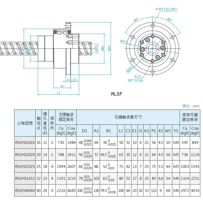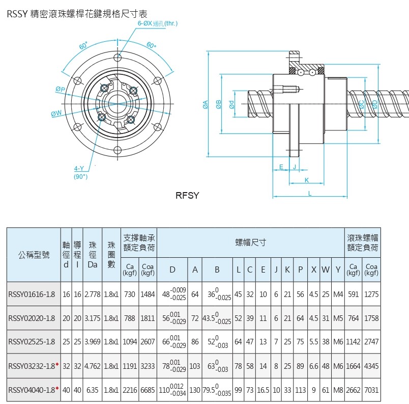 螺帽旋轉式滾珠螺桿滾珠花鍵RSSY系列是將RFSY系列與RLSF系列結合透過螺帽及外筒的旋轉或停止的運動,只用一根軸就能進行旋轉、螺旋、直線模式的運動。
