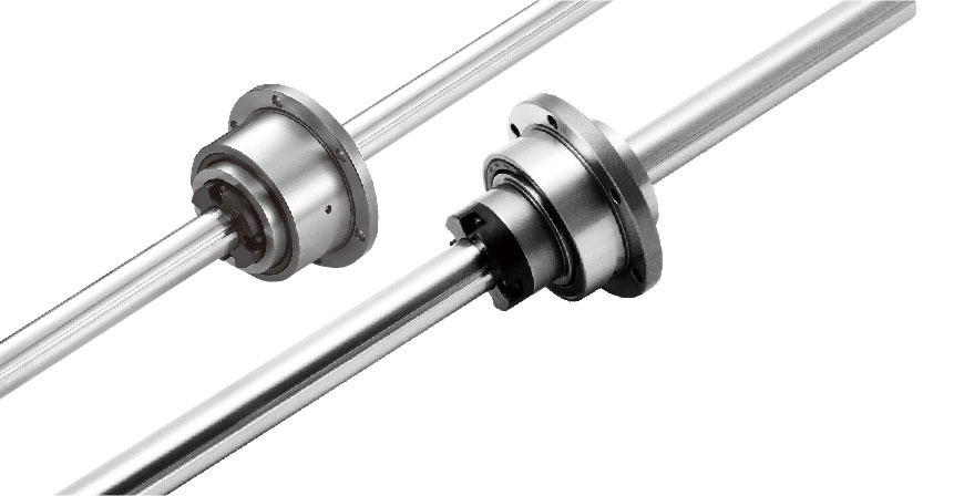 旋轉式滾珠花鍵在花鍵外筒的外徑上裝上專用的軸承外套,使之運轉動作。通過讓外筒旋轉或停止的運作,只用一根軸就能夠進行2種(旋轉、直線)模式的運動。